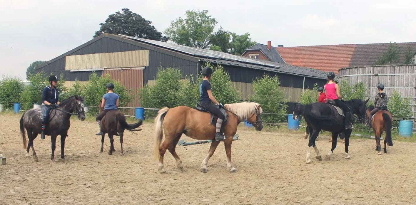 Unsere Reitkurse richten sich an Kinder ab 9 Jahren, die mehr über das Reiten und den Umgang mit Ponys lernen möchten. Im Mittelpunkt steht das Reiten in Schritt, Trab und Galopp – stets angepasst an das individuelle Können.
